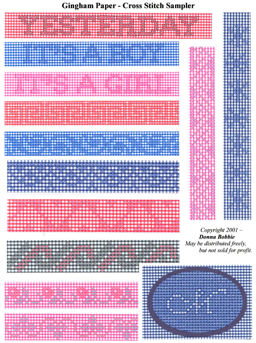 Cross stitch on gingham paper sampler sheet
