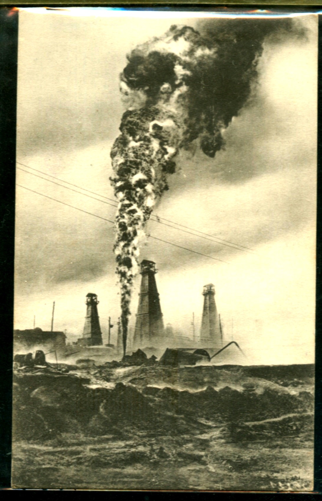 82000088 View from drill field near the village of Moreny, near Ploesti.Postcard sent in 1930.Not mailed (no stamps).But used with interesing history, text on the back.Postcrd, VG condition.On the back (applied below) written the text: "This drill has been inflamed by a strong stream of grains of sand that it throws up.By the temperature of the rubbing this drill inflamed in 1925 and still is in flames so far (the letter writtn in 1930).When travelling by train from Bucuresti to Ploesti one can see through the windows in good weather the flames lights.This treasure of Romania is burning with no possibility to save". $16 |