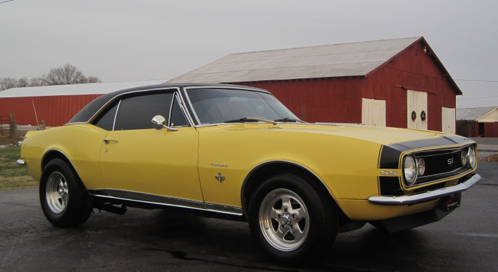 1967 Camaro SS! Real 4 P Camaro! Has nice Yellow Exterior paint with Black Bumble Bee Nose Stripe! Black Deluxe Bucket Seat Interior with Auto Console!