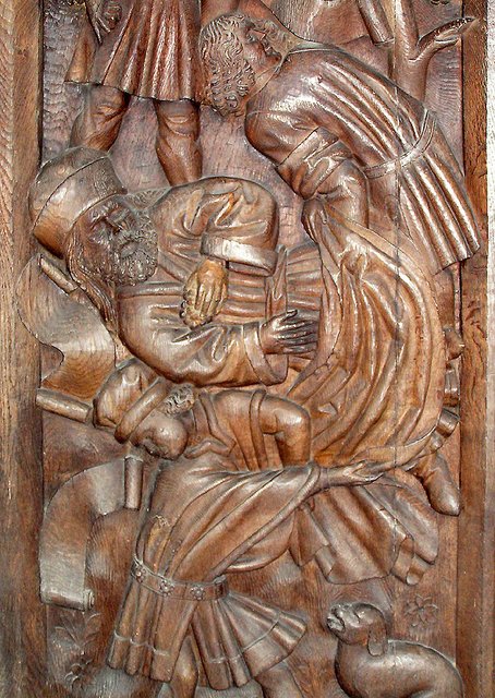 23 Urach, Stiftskirche Slightly different page costumes but selfsame motive as the Patres choir in Maulbronn. Somewhat disappointing. You would at least have expected Eliah descending from heaven in his chariot of fire to congratulate Eberhard in person on the signing of the compact of Münsingen (reunification of the duchy).