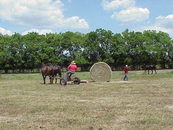 |  2 Eddie is taking rope over the top of the hay and will fasten to ball on forecart